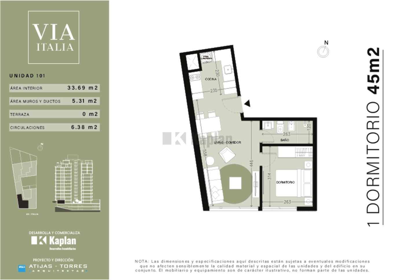 VIA ITALIA es un edificio proyectado con un diseño contemporáneo que combina estética, funcionalidad y confort. Se desarrolla en 12 pisos, con un total de 60 apartamentos distribuidos en monoambientes, 1, 2 y 3 dormitorios. En el último nivel se ubican los amenities, que incluyen una terraza con parrillero y solárium, salón de usos múltiples, gimnasio, espacio de cowork y laundry de uso común, pensados para disfrutar de las vistas, promover la convivencia y ofrecer bienestar a sus residentes.