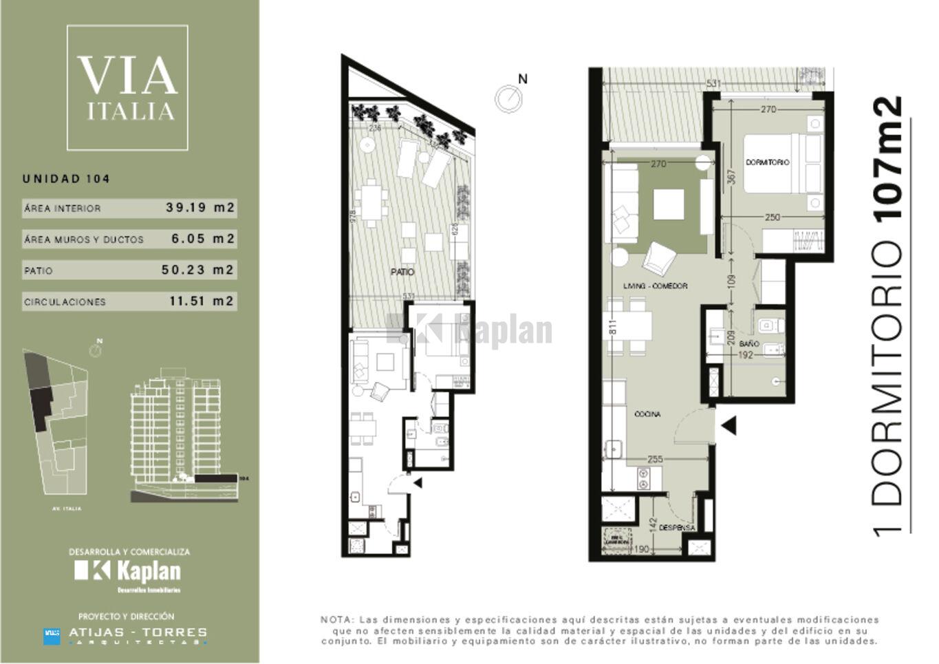 VIA ITALIA es un edificio proyectado con un diseño contemporáneo que combina estética, funcionalidad y confort. Se desarrolla en 12 pisos, con un total de 60 apartamentos distribuidos en monoambientes, 1, 2 y 3 dormitorios. En el último nivel se ubican los amenities, que incluyen una terraza con parrillero y solárium, salón de usos múltiples, gimnasio, espacio de cowork y laundry de uso común, pensados para disfrutar de las vistas, promover la convivencia y ofrecer bienestar a sus residentes.