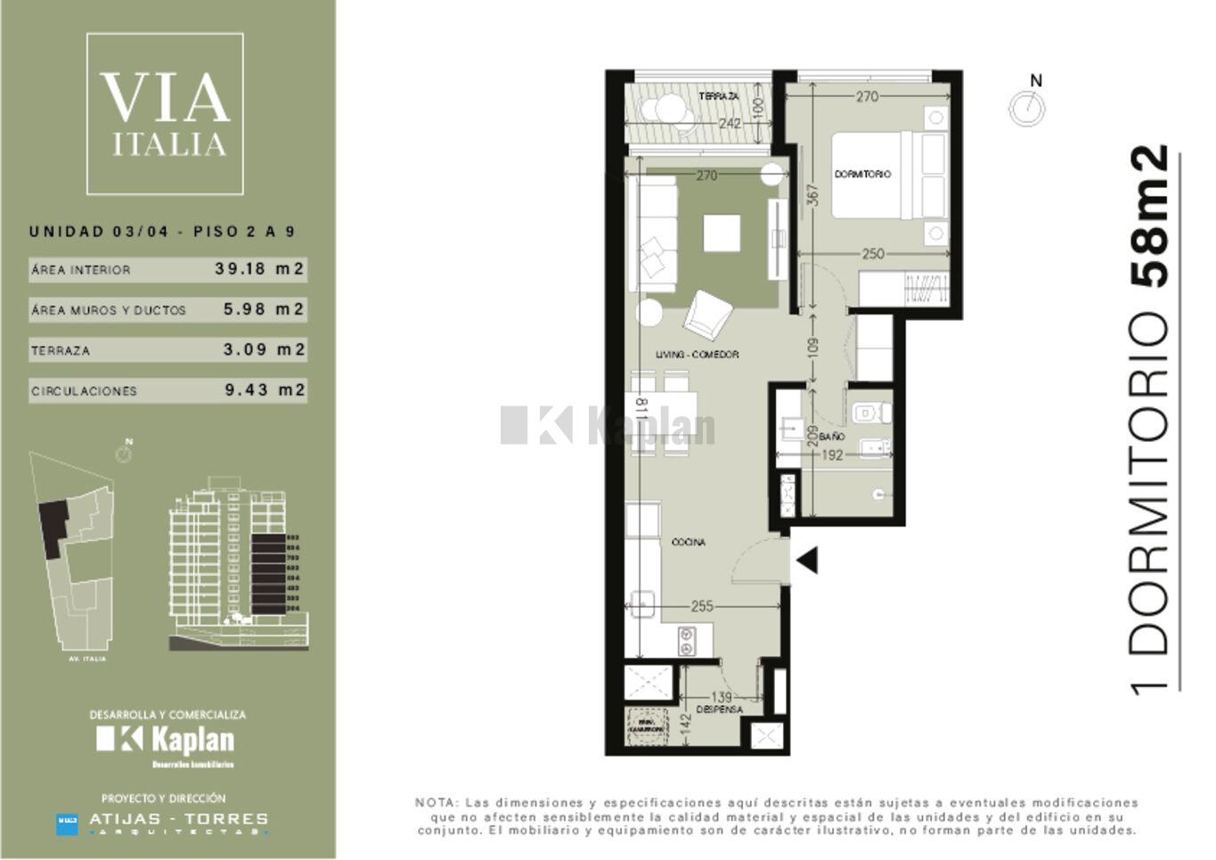 VIA ITALIA es un edificio proyectado con un diseño contemporáneo que combina estética, funcionalidad y confort. Se desarrolla en 12 pisos, con un total de 60 apartamentos distribuidos en monoambientes, 1, 2 y 3 dormitorios. En el último nivel se ubican los amenities, que incluyen una terraza con parrillero y solárium, salón de usos múltiples, gimnasio, espacio de cowork y laundry de uso común, pensados para disfrutar de las vistas, promover la convivencia y ofrecer bienestar a sus residentes.