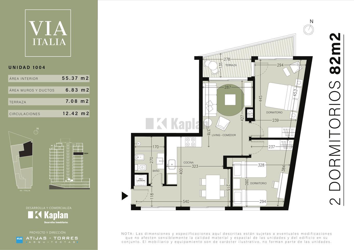 VIA ITALIA es un edificio proyectado con un diseño contemporáneo que combina estética, funcionalidad y confort. Se desarrolla en 12 pisos, con un total de 60 apartamentos distribuidos en monoambientes, 1, 2 y 3 dormitorios. En el último nivel se ubican los amenities, que incluyen una terraza con parrillero y solárium, salón de usos múltiples, gimnasio, espacio de cowork y laundry de uso común, pensados para disfrutar de las vistas, promover la convivencia y ofrecer bienestar a sus residentes.