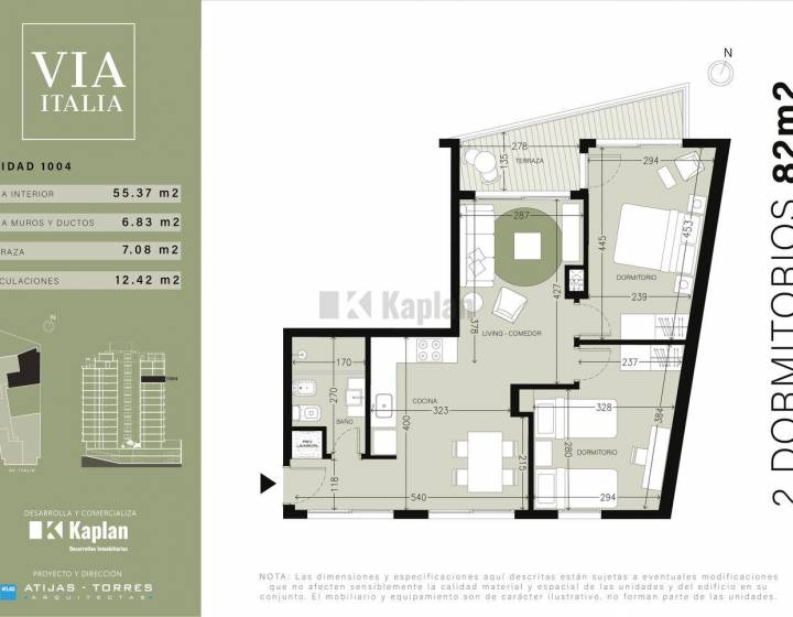 VIA ITALIA es un edificio proyectado con un diseño contemporáneo que combina estética, funcionalidad y confort. Se desarrolla en 12 pisos, con un total de 60 apartamentos distribuidos en monoambientes, 1, 2 y 3 dormitorios. En el último nivel se ubican los amenities, que incluyen una terraza con parrillero y solárium, salón de usos múltiples, gimnasio, espacio de cowork y laundry de uso común, pensados para disfrutar de las vistas, promover la convivencia y ofrecer bienestar a sus residentes.