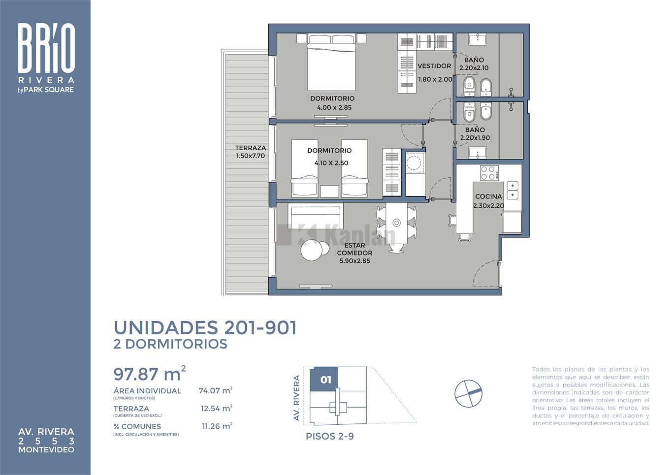 BRÍO RIVERA es un edificio moderno de 12 pisos, conformado por 48 apartamentos de 1 y 2 dormitorios. El proyecto incorpora amenities pensados para disfrutar, socializar y aportar confort al día a día: un SUM con barbacoa, gimnasio equipado y lavadero de uso común, creando espacios de encuentro y bienestar para sus residentes.