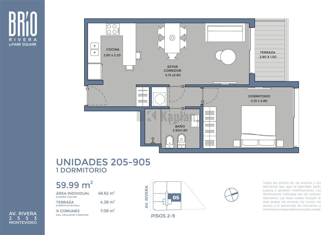 BRÍO RIVERA es un edificio moderno de 12 pisos, conformado por 48 apartamentos de 1 y 2 dormitorios. El proyecto incorpora amenities pensados para disfrutar, socializar y aportar confort al día a día: un SUM con barbacoa, gimnasio equipado y lavadero de uso común, creando espacios de encuentro y bienestar para sus residentes.