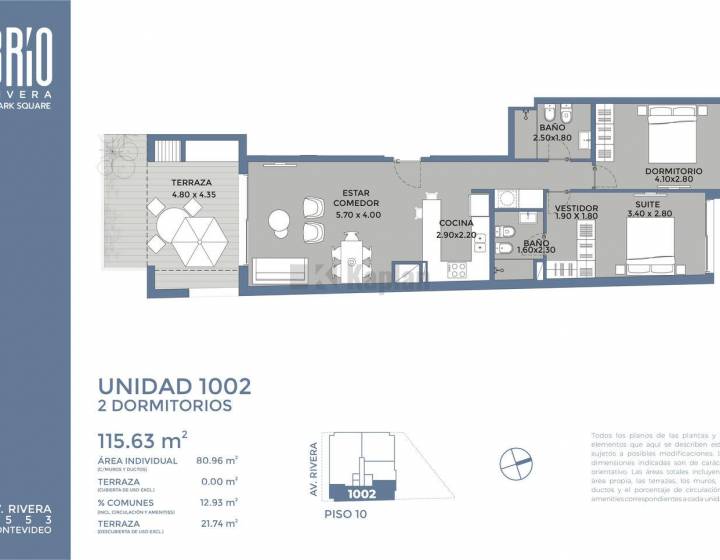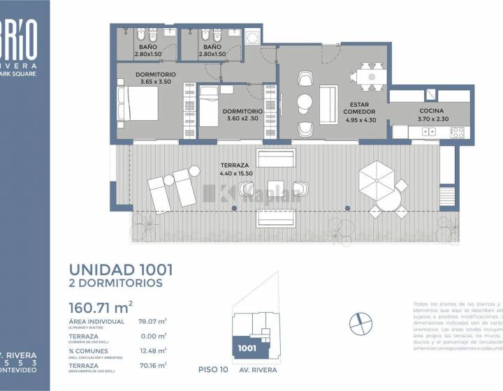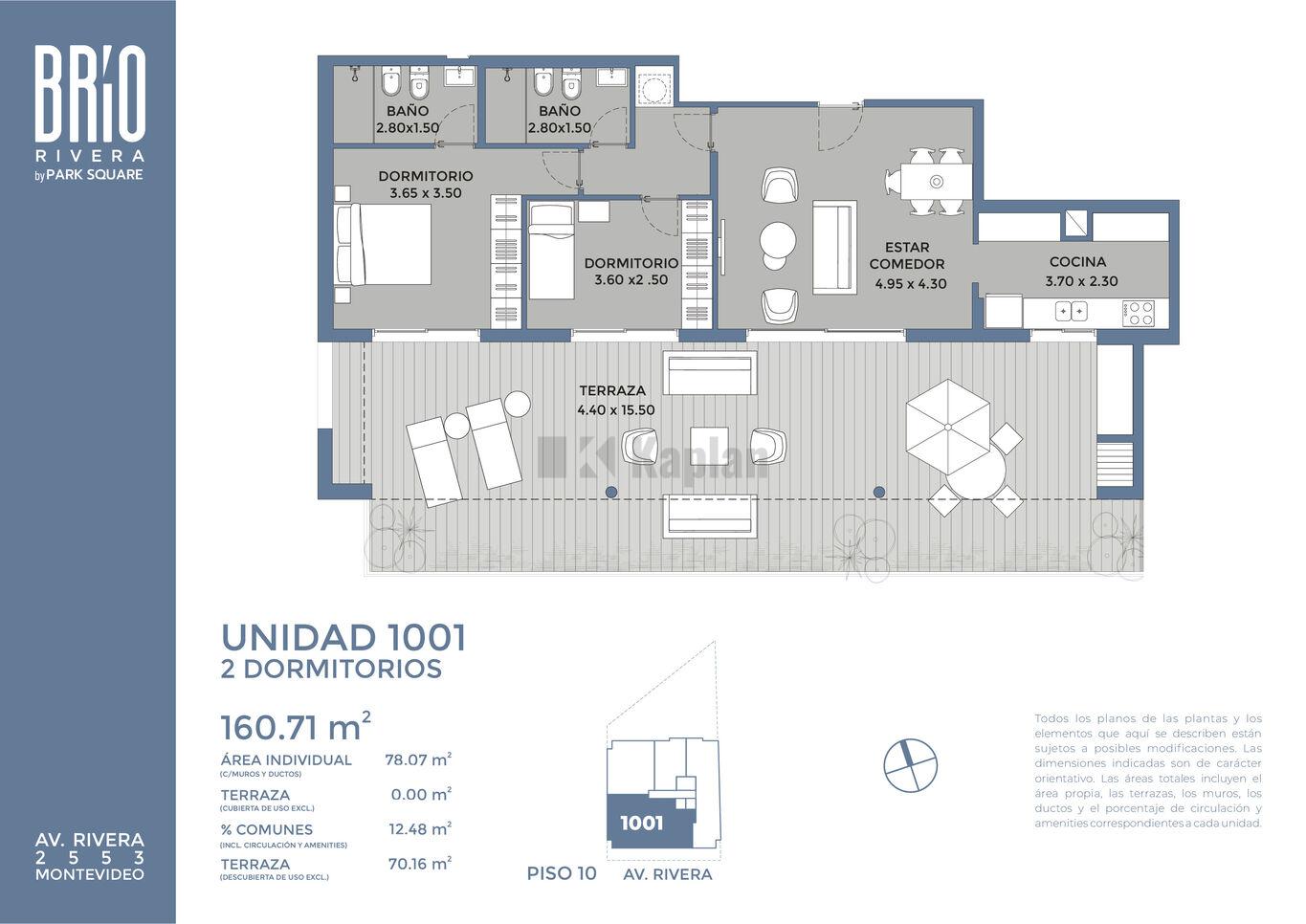 BRÍO RIVERA es un edificio moderno de 12 pisos, conformado por 48 apartamentos de 1 y 2 dormitorios. El proyecto incorpora amenities pensados para disfrutar, socializar y aportar confort al día a día: un SUM con barbacoa, gimnasio equipado y lavadero de uso común, creando espacios de encuentro y bienestar para sus residentes.