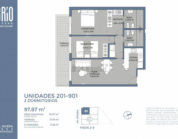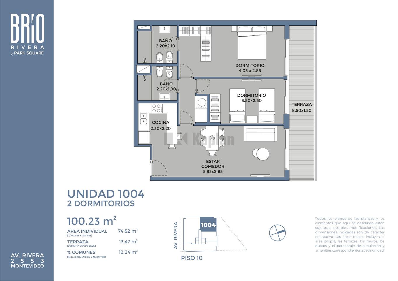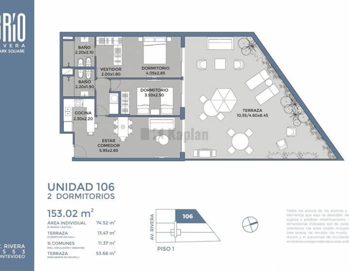 BRÍO RIVERA es un edificio moderno de 12 pisos, conformado por 48 apartamentos de 1 y 2 dormitorios. El proyecto incorpora amenities pensados para disfrutar, socializar y aportar confort al día a día: un SUM con barbacoa, gimnasio equipado y lavadero de uso común, creando espacios de encuentro y bienestar para sus residentes.