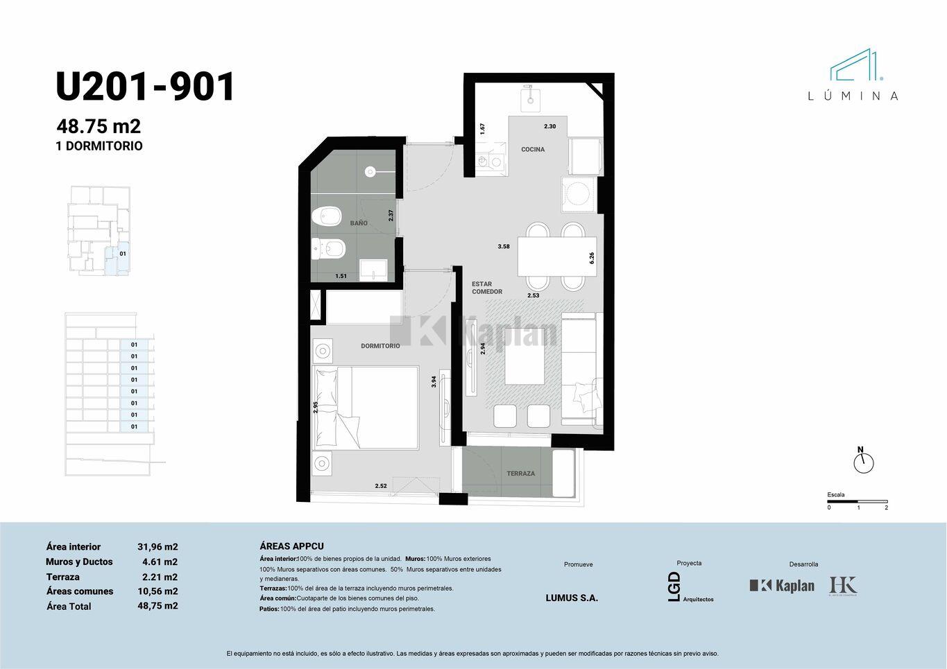 Con una estética moderna y contundente, Lúmina Rodó proyecta 41 apartamentos a lo largo de 10 pisos y un local comercial en planta baja. Se ofrecen tipologías que incluyen monoambientes, apartamentos de 1 y 2 dormitorios. tambien 21 plazas de garaje opcionales que se distribuyen entre subsuelo, planta baja y primer nivel. En el piso 11, encontramos los amenities incluyen un espacio de coworking, gimnasio, laundreria y una amplia terraza solárium con parrilleros y vistas despejadas. Todo el edificio cuenta con un sistema de seguridad integrado para ofrecer confort y tranquilidad.