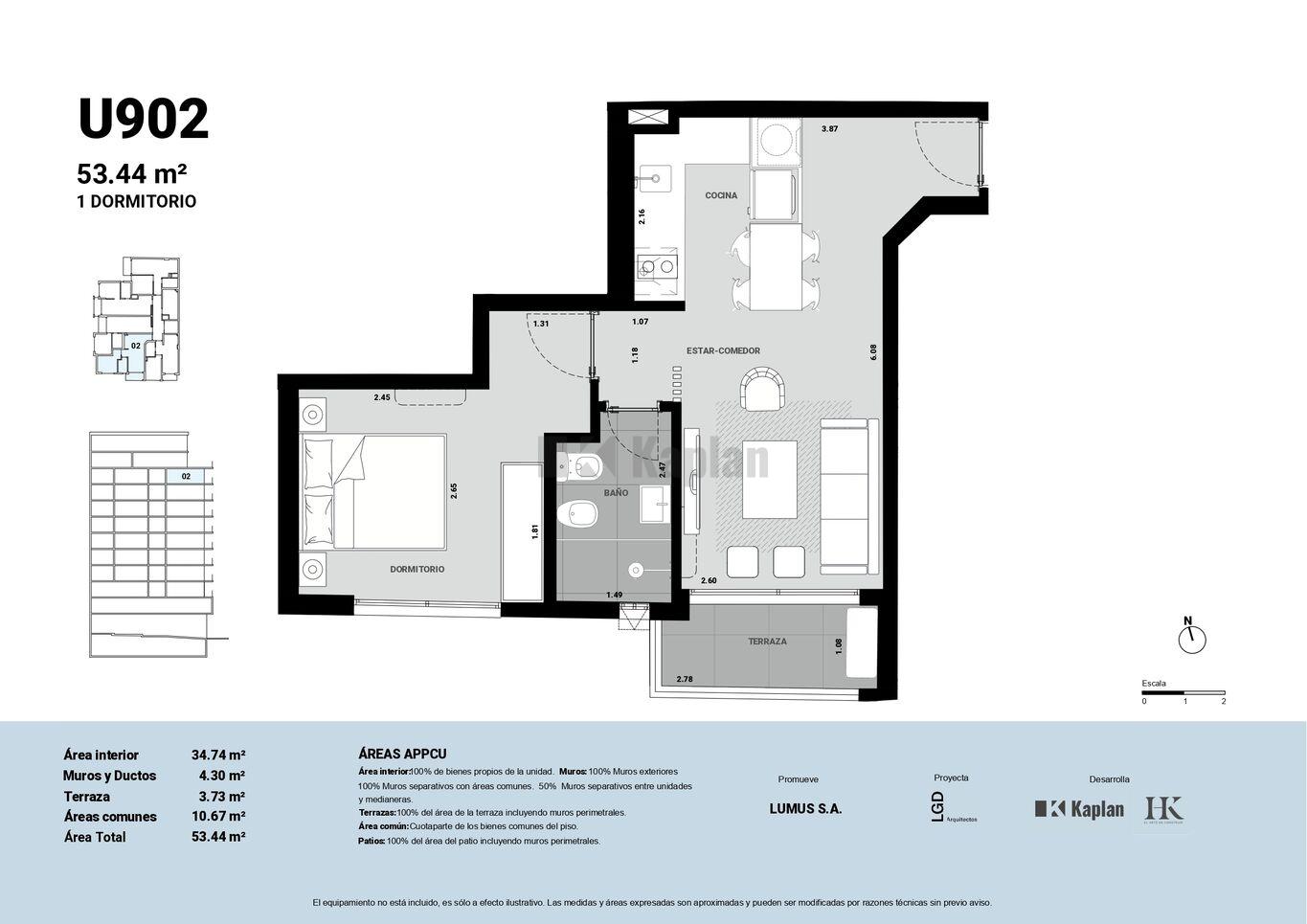 Los apartamentos presentan un diseño moderno de planta libre que integra la cocina con la sala de estar, favoreciendo la luminosidad y amplitud. Cada cocina está equipada con campana, horno y anafe eléctrico, asi como la preinstalación para aire acondicionado. Todos los apartamentos dan al frente y cuentan con terrazas privadas con barandas de vidrio.