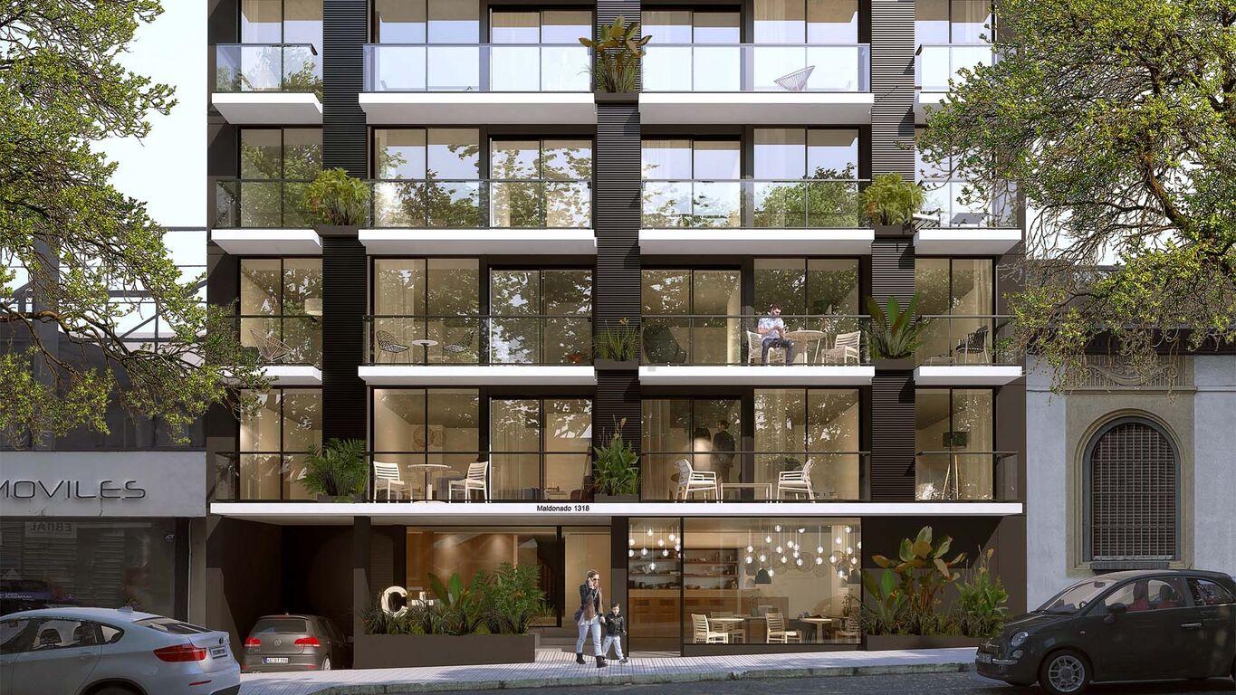 El edificio esta formado por una torre de 6 niveles de apartamentos monoambientes, 1 y 2 dormitorios, subsuelo de estacionamientos y se completa con una terraza en piso 7 con Amenities de primer nivel: salón de usos múltiples, gimnasio, cowork, solárium, parrillero interior con kitchenette, solarium y área de tenders.