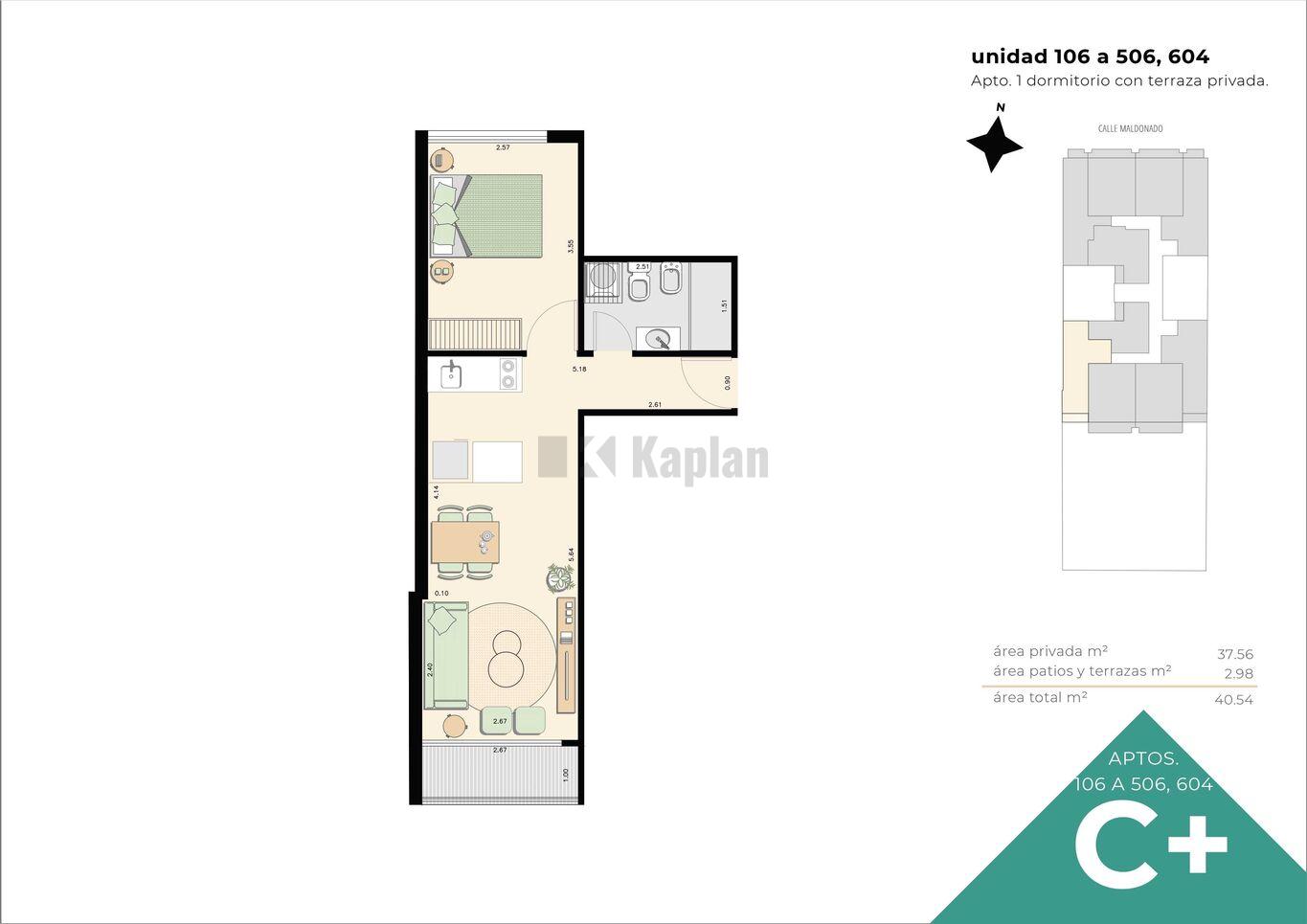 Los apartamentos son entregados con cocinas equipadas: horno, anafe, y campanas de extracción, placares aéreos y bajo mesada. Placares en dormitorio y baños. Previsión para lavadora y Aire Acondicionado.