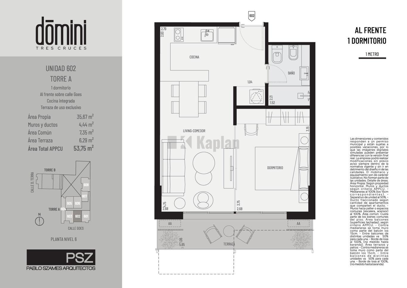 El proyecto propone dos torres con accesos independientes, torre Goes con 11 niveles y 77 apartamentos; y torre Terra con 6 niveles y 15 apartamentos.