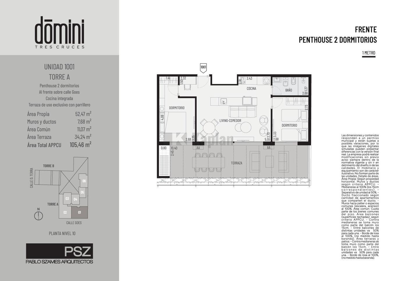 El proyecto propone dos torres con accesos independientes, torre Goes con 11 niveles y 77 apartamentos; y torre Terra con 6 niveles y 15 apartamentos.