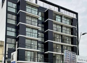 El edificio esta formado por dos torres de 5 niveles de apartamentos de 1 dormitorio y monoambientes, subsuelo de estacionamientos y se completa con una terraza con Amenities de primer nivel: salón de usos múltiples, gimnasio, un rincón infantil, solárium, parrillero interior con kitchenette, parrillero exterior techado y dos terrazas con vistas despejadas de la cuidad.