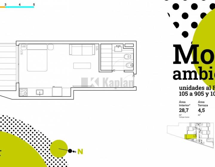 Se trata de un edificio de 48 apartamentos, los cuales se distribuyen en Lofts, Monoambientes, 1 y 2 Dormitorios. Incorpora Amenities de primer nivel, en piso 11, una barbacoa cerrada con parrillero, solárium y gimnasio, en el piso 1 se encuentra una barbacoa cerrada y con parrillero vinculado a un patio ajardinado y un área de lavadero.
