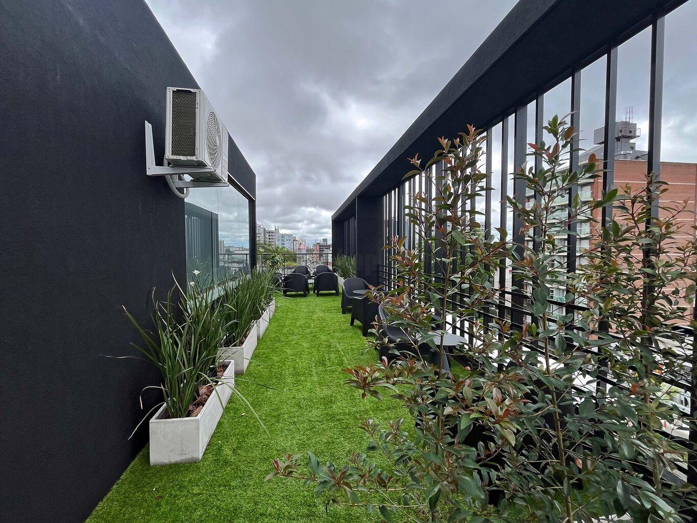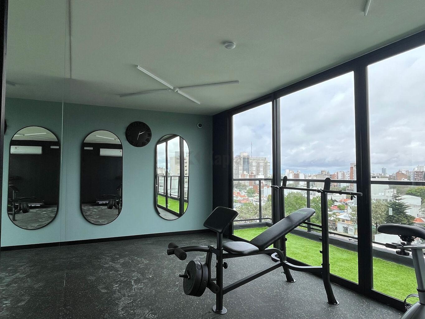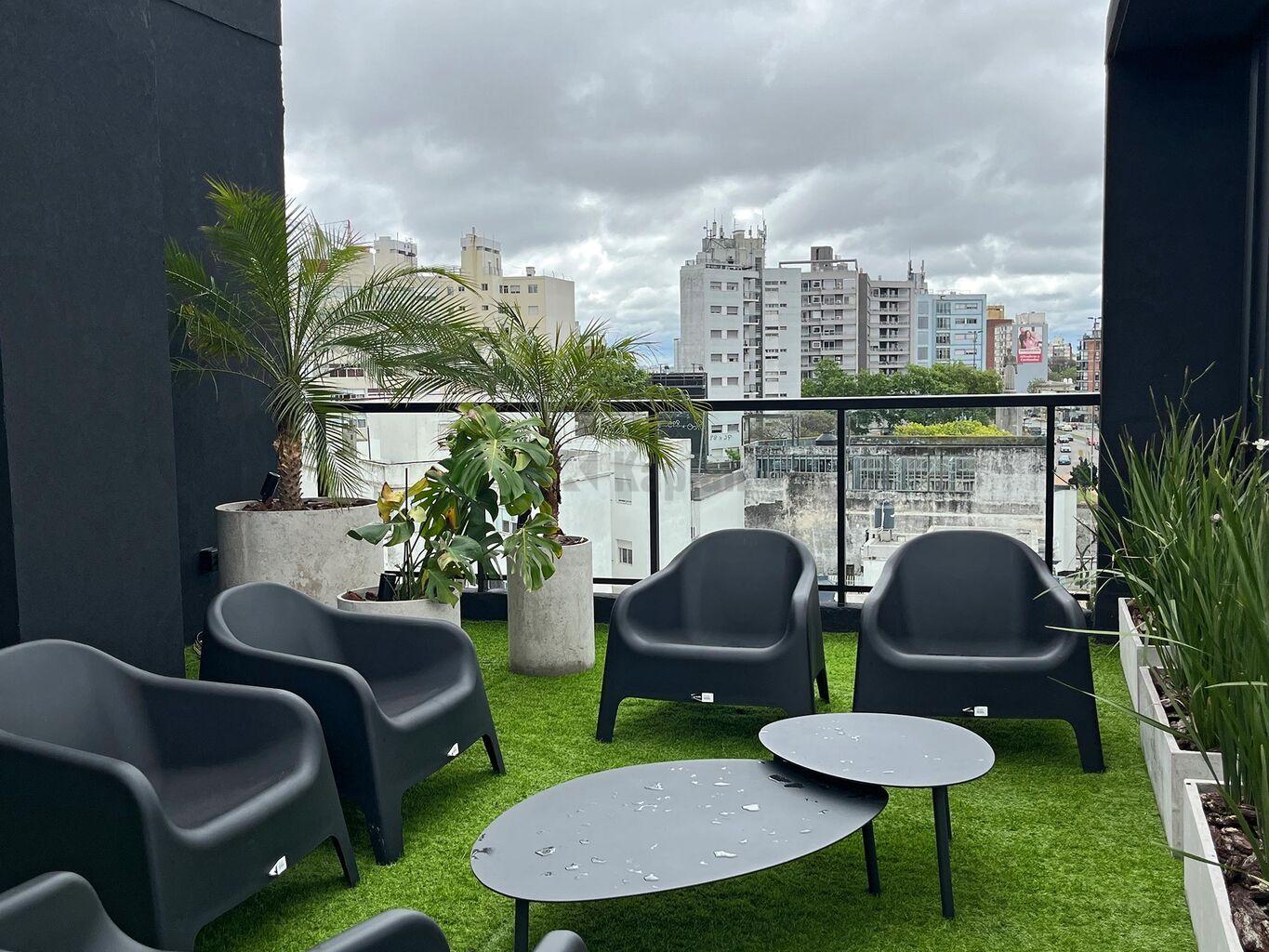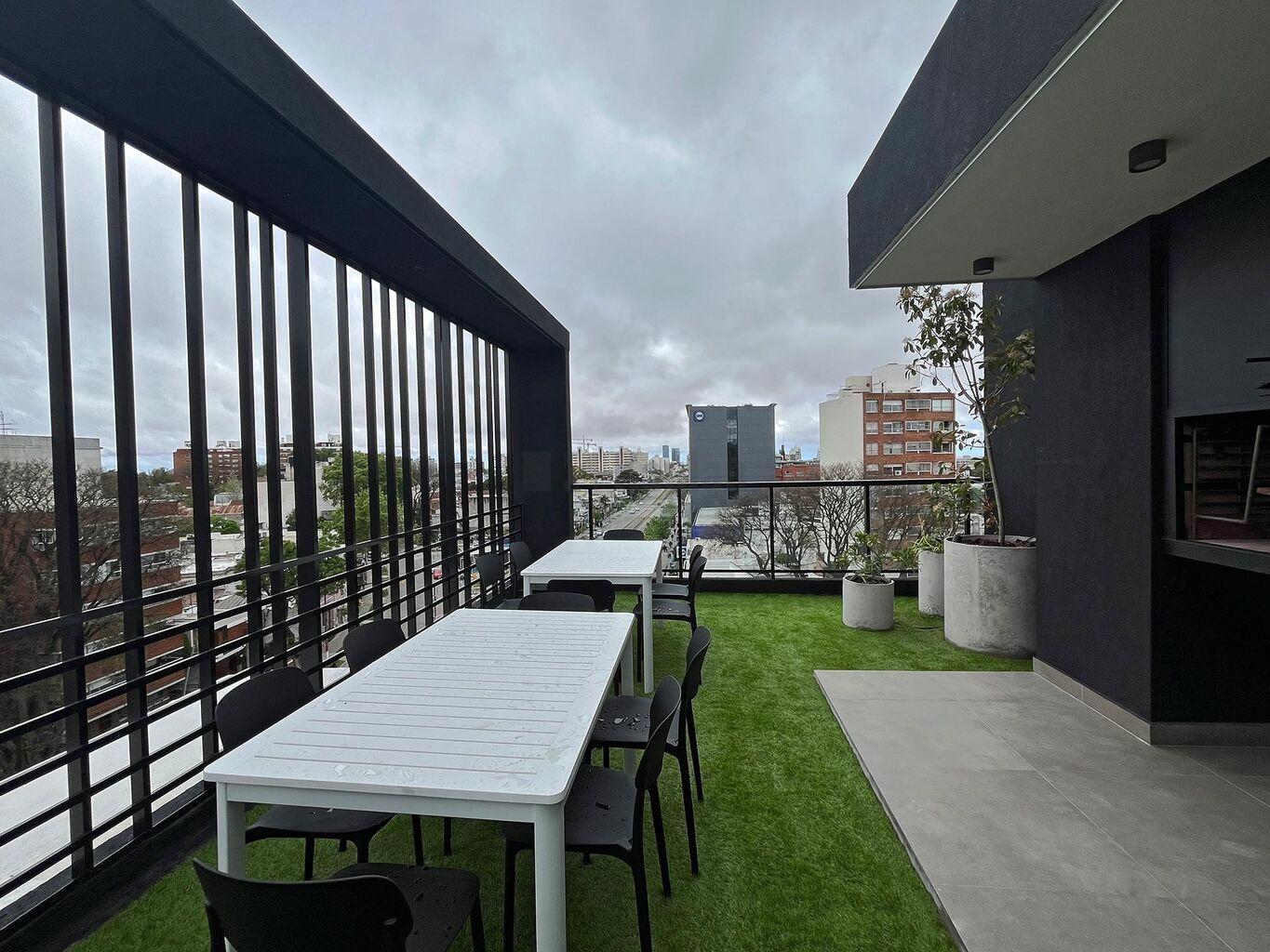 El edificio esta formado por dos torres de 5 niveles de apartamentos de 1 dormitorio y monoambientes, subsuelo de estacionamientos y se completa con una terraza con Amenities de primer nivel: salón de usos múltiples, gimnasio, un rincón infantil, solárium, parrillero interior con kitchenette, parrillero exterior techado y dos terrazas con vistas despejadas de la cuidad.