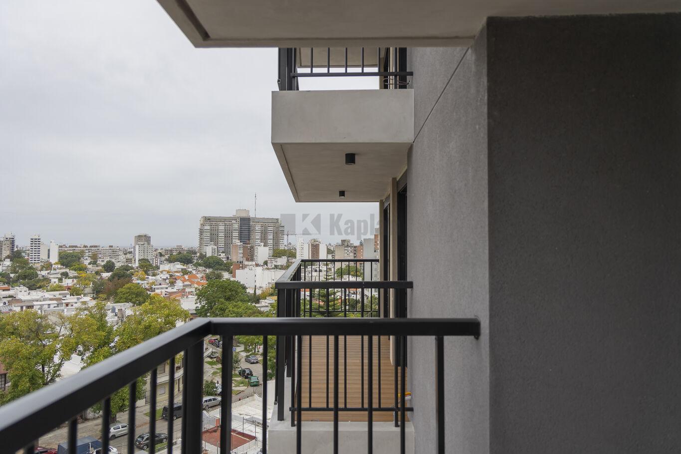 El edificio está compuesto por 36 unidades, de las cuales 18 son unidades de 1 dormitorio y 18 son unidades de 2 dormitorios. Esta compuesto por 10 niveles más planta baja y un subsuelo. En planta baja dispone de 8 plazas de estacionamiento, local comercial, y hall de acceso. En el piso 10 se localiza el salón de usos múltiples con parrillero, un gimnasio y una amplia terraza con vista hacia la avenida Centenario.