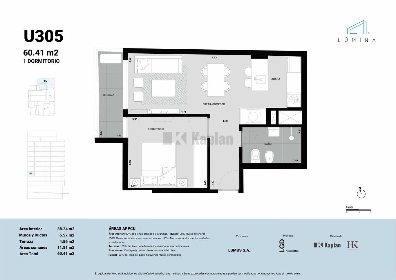 Con una estética moderna y contundente, Lúmina Rodó proyecta 41 apartamentos a lo largo de 10 pisos y un local comercial en planta baja. Se ofrecen tipologías que incluyen monoambientes, apartamentos de 1 y 2 dormitorios. tambien 21 plazas de garaje opcionales que se distribuyen entre subsuelo, planta baja y primer nivel. En el piso 11, encontramos los amenities incluyen un espacio de coworking, gimnasio, laundreria y una amplia terraza solárium con parrilleros y vistas despejadas. Todo el edificio cuenta con un sistema de seguridad integrado para ofrecer confort y tranquilidad.