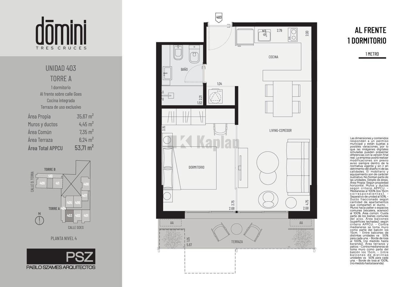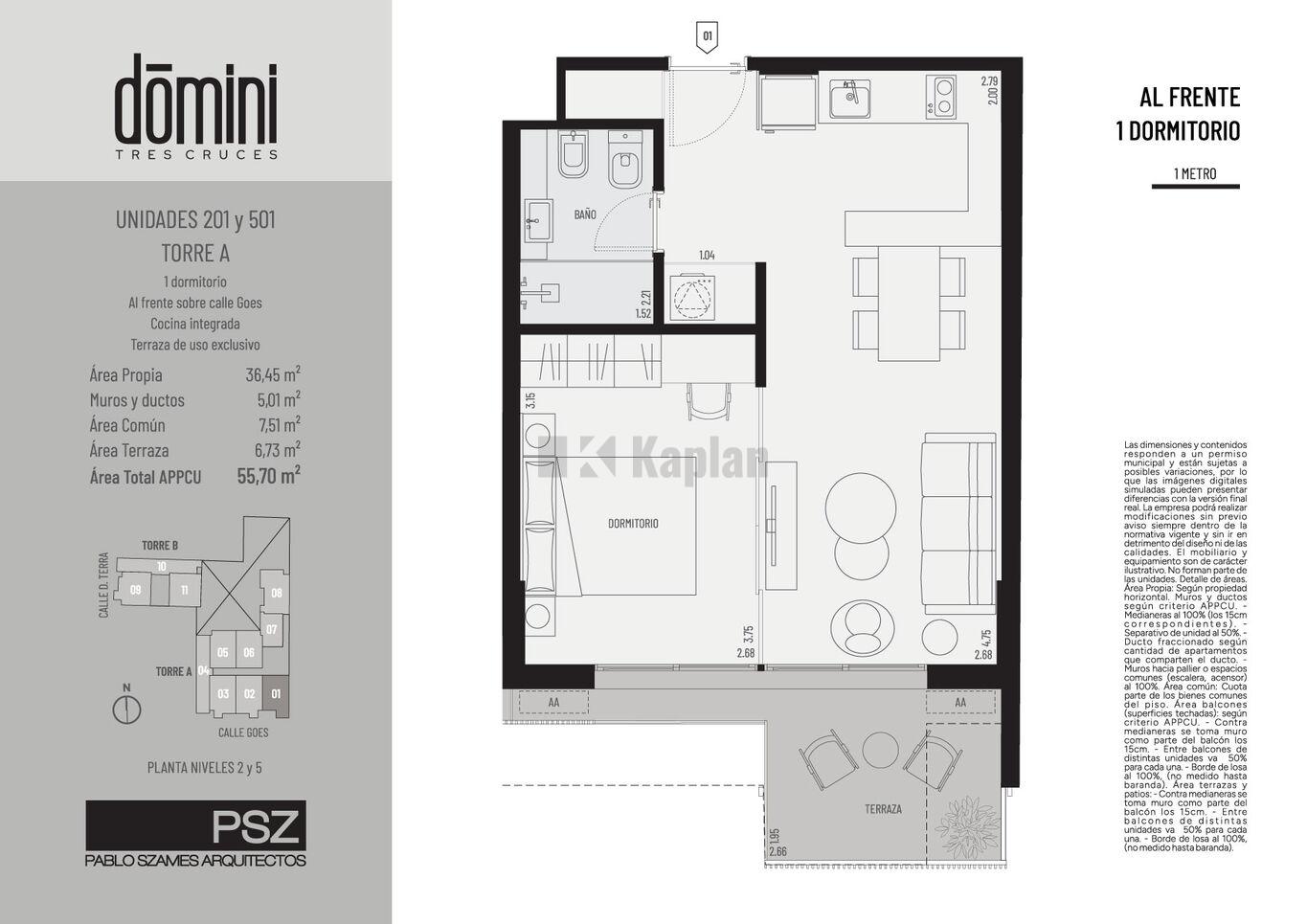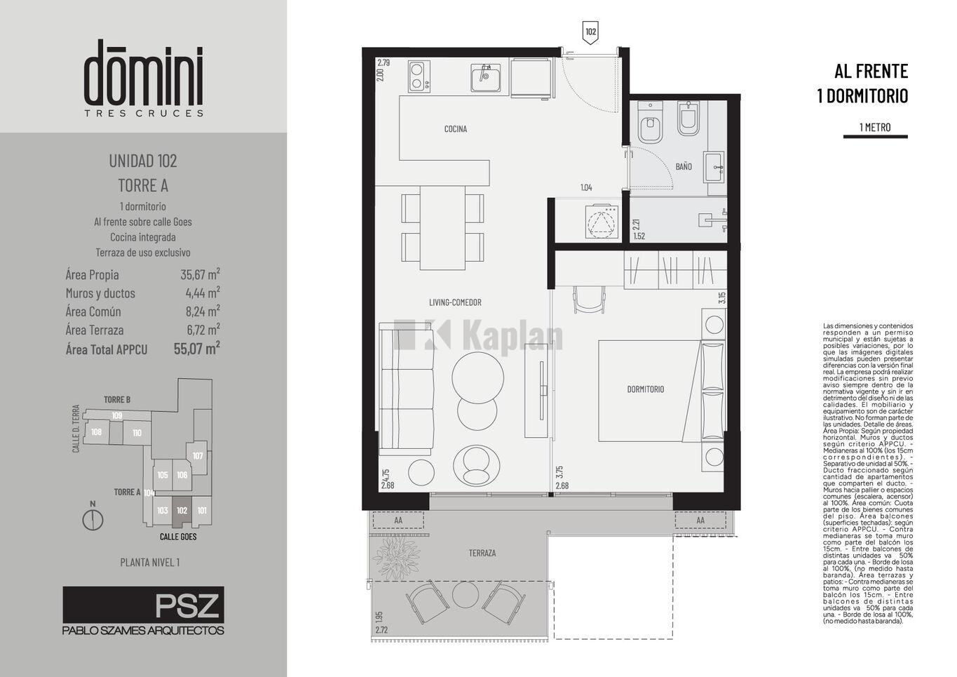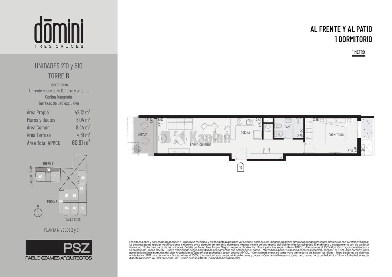 El proyecto propone dos torres con accesos independientes, torre Goes con 11 niveles y 77 apartamentos; y torre Terra con 6 niveles y 15 apartamentos.