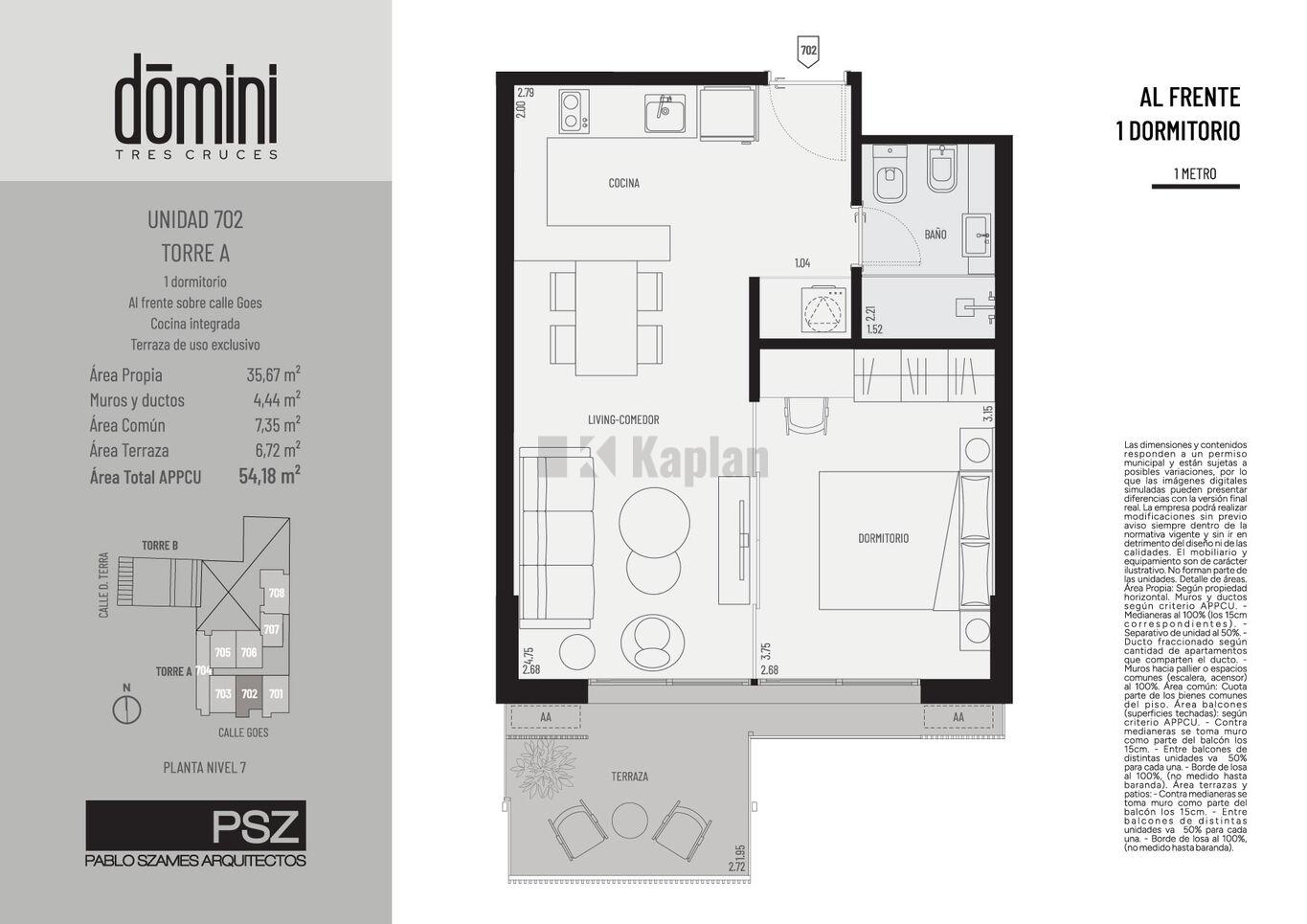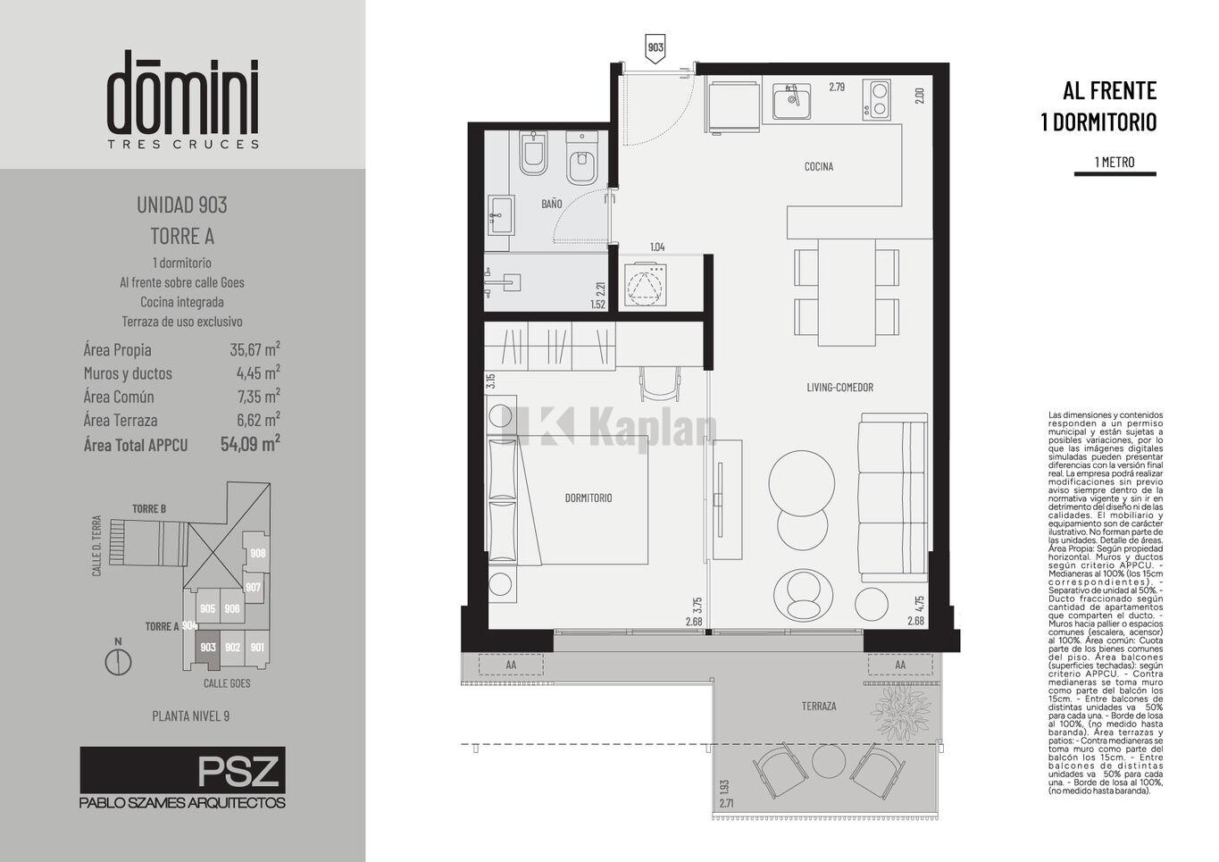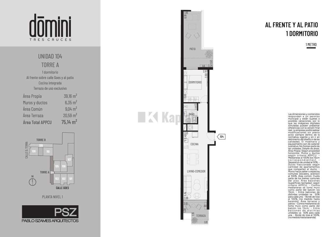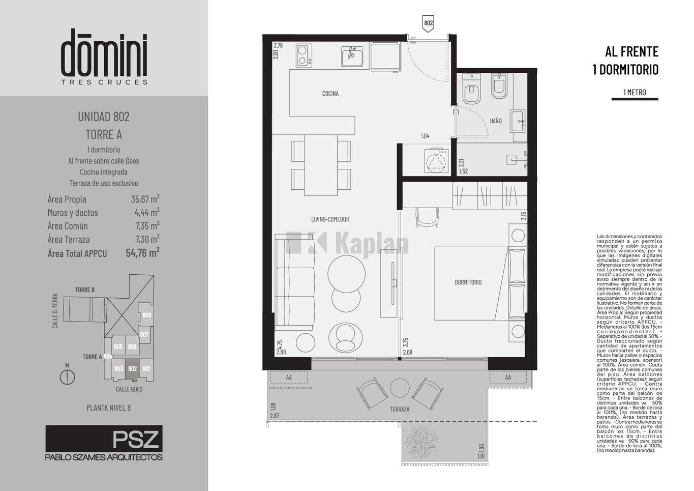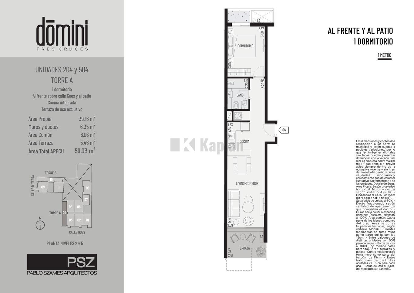 El proyecto propone dos torres con accesos independientes, torre Goes con 11 niveles y 77 apartamentos; y torre Terra con 6 niveles y 15 apartamentos.