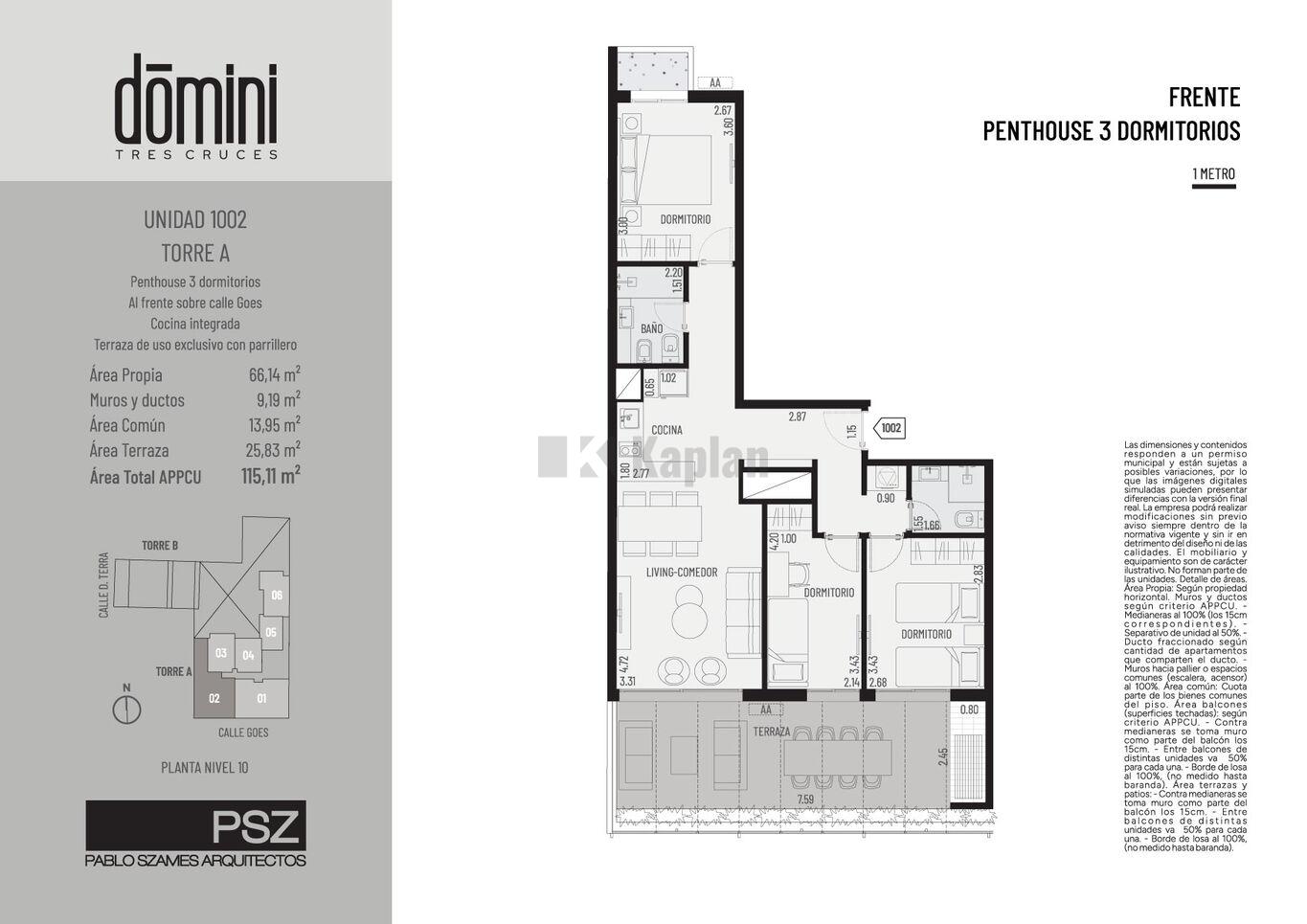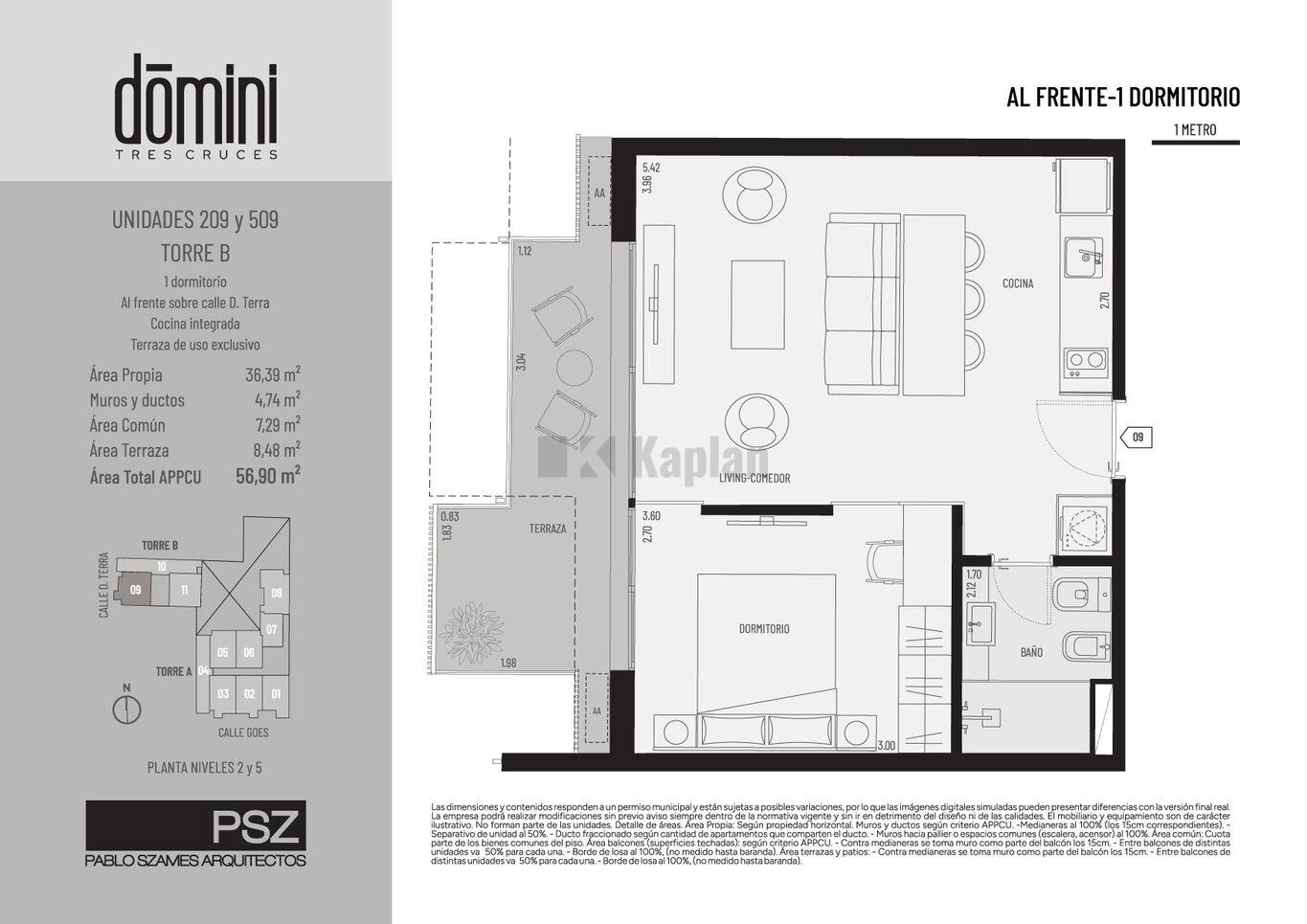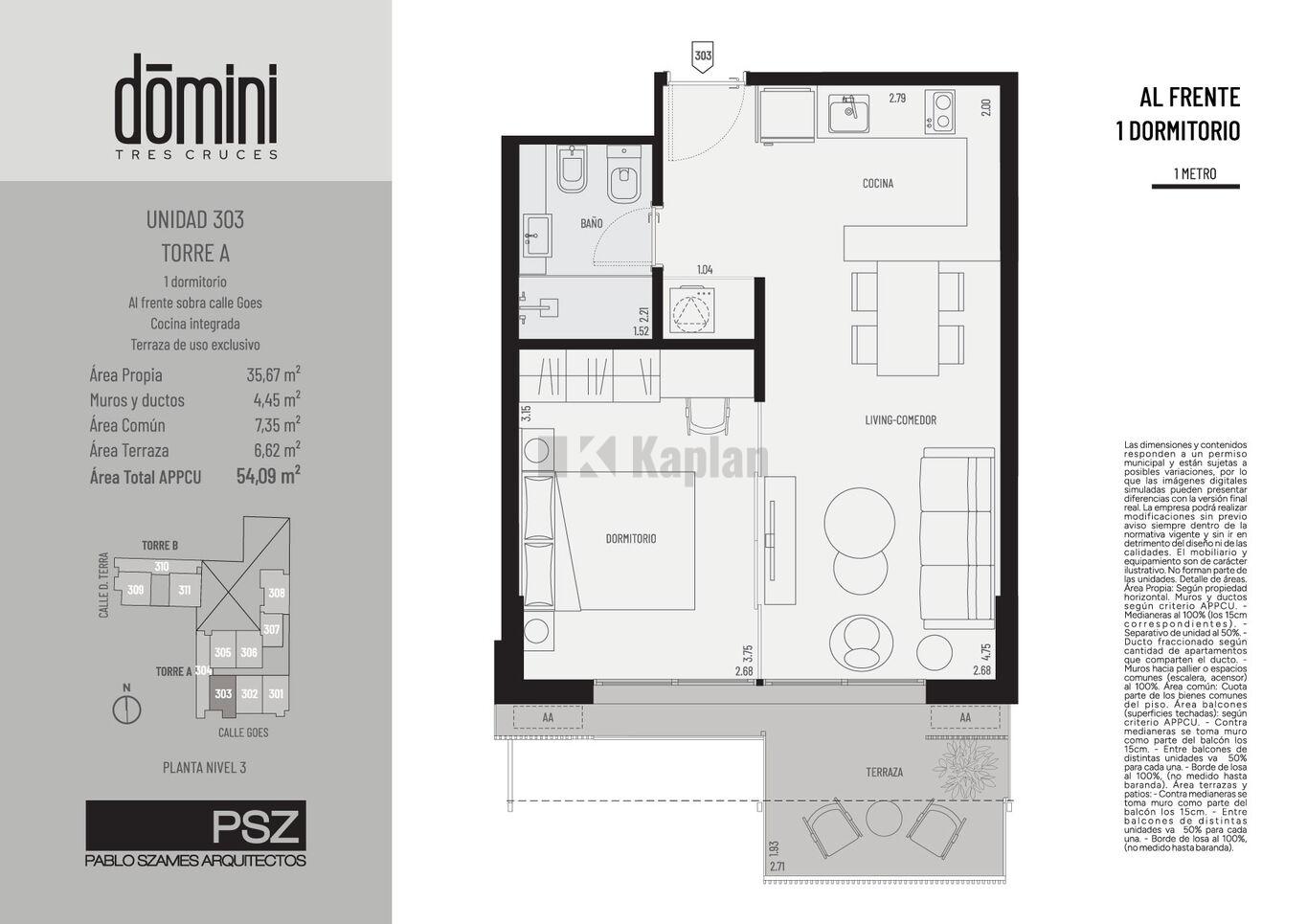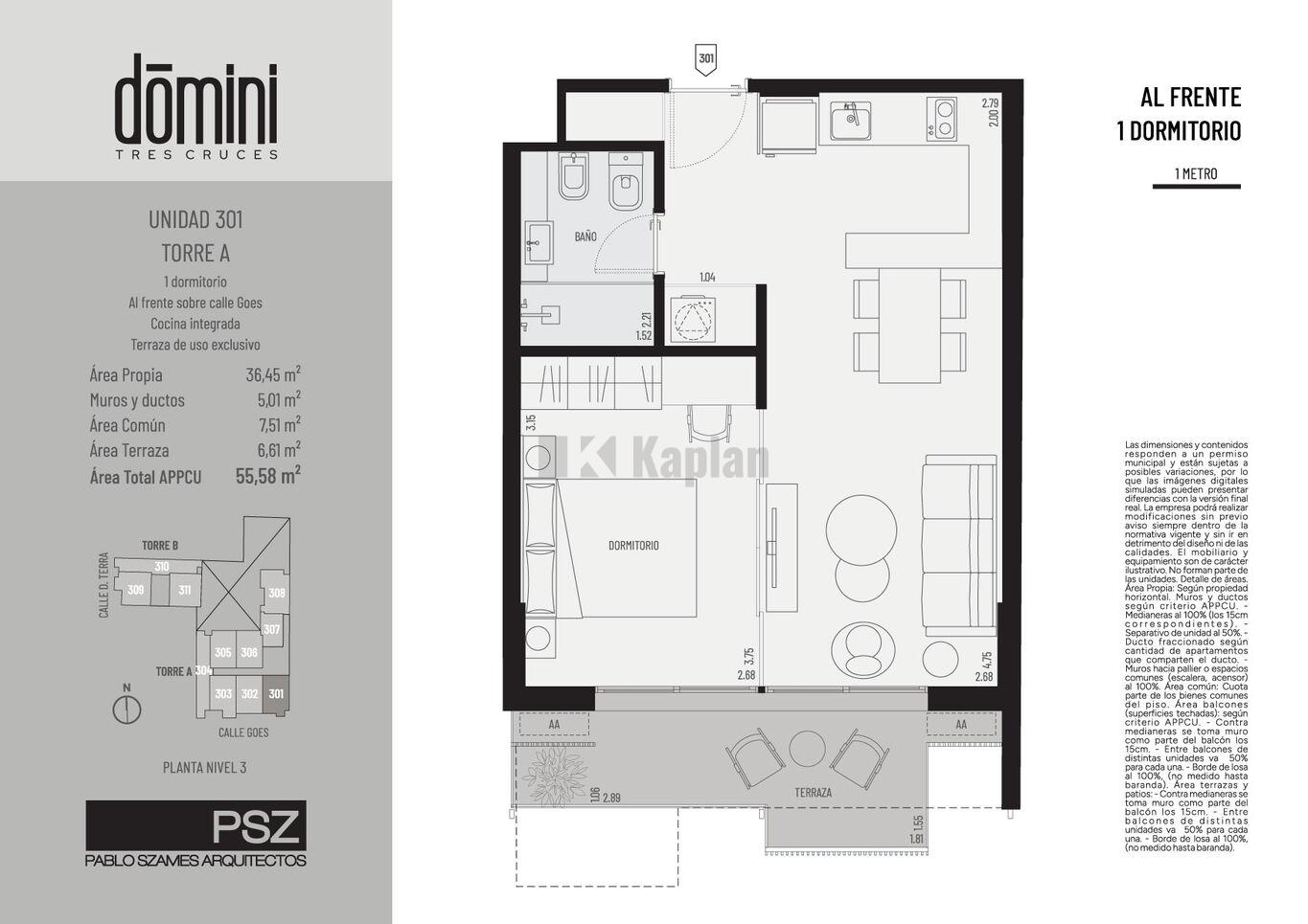 El proyecto propone dos torres con accesos independientes, torre Goes con 11 niveles y 77 apartamentos; y torre Terra con 6 niveles y 15 apartamentos.