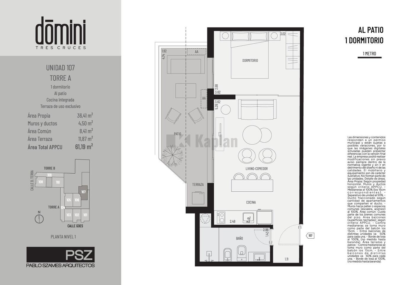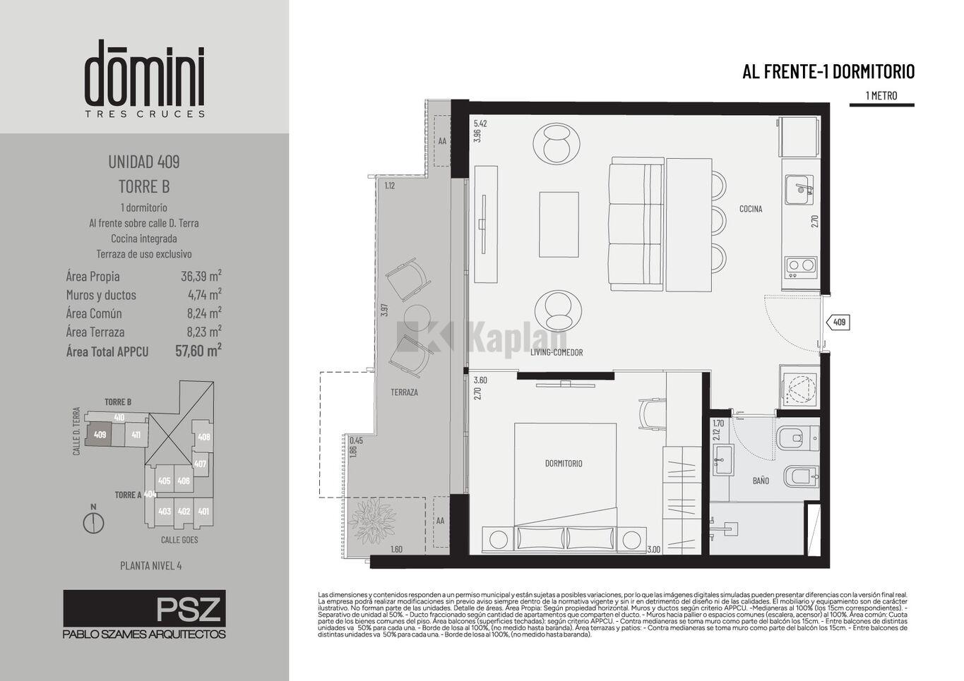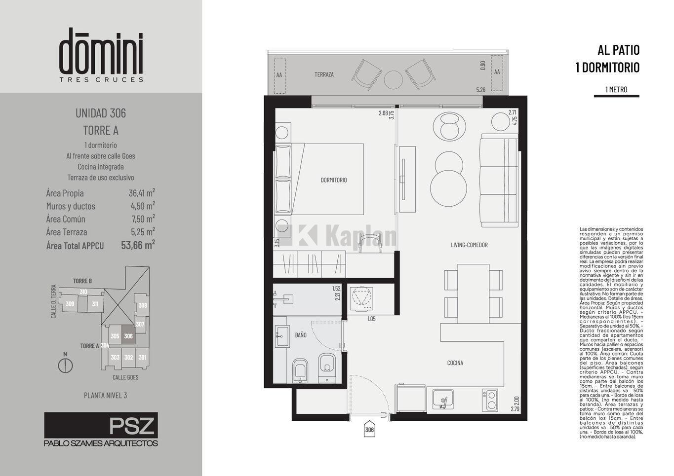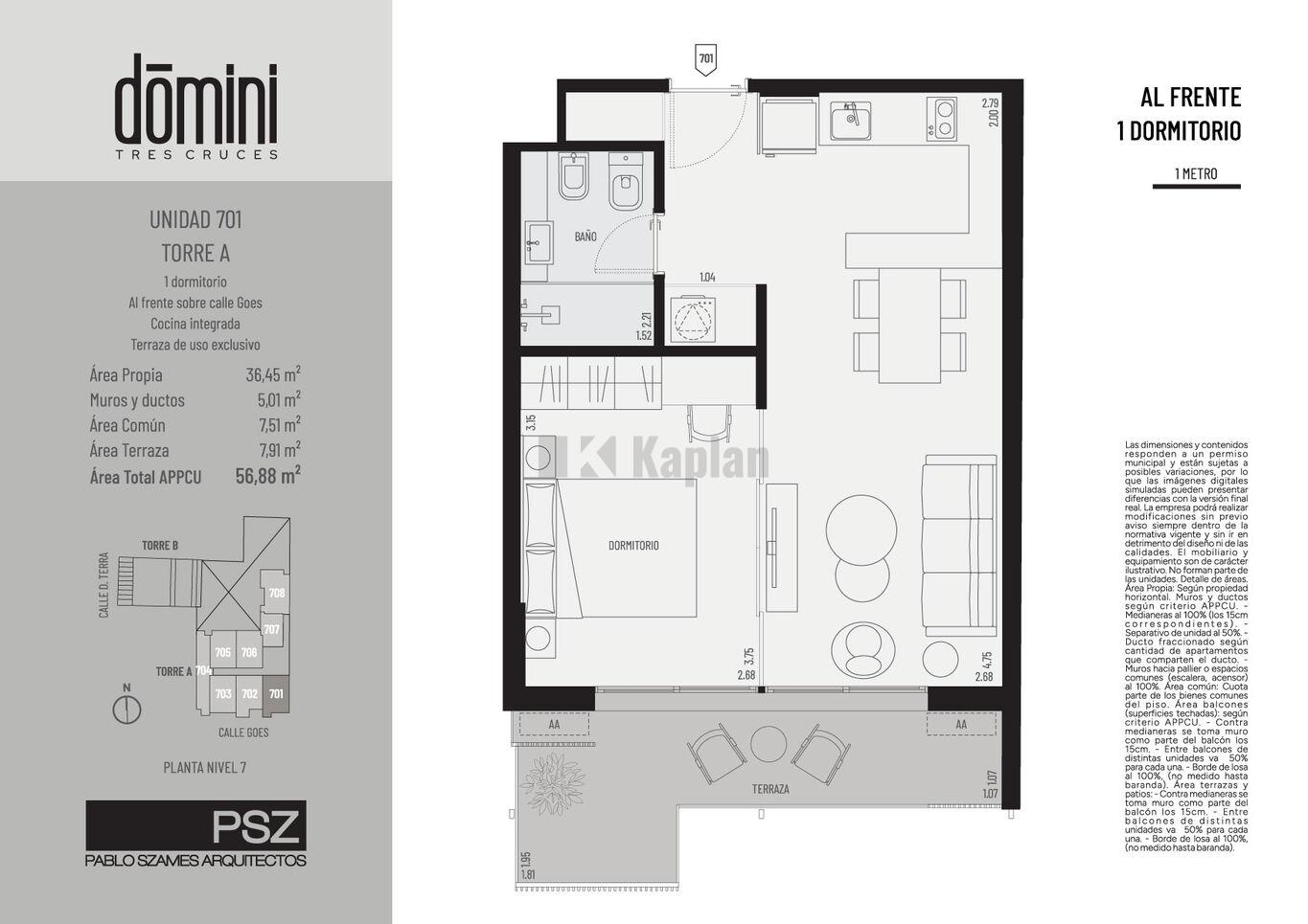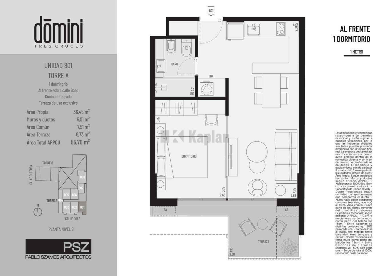 El proyecto propone dos torres con accesos independientes, torre Goes con 11 niveles y 77 apartamentos; y torre Terra con 6 niveles y 15 apartamentos.